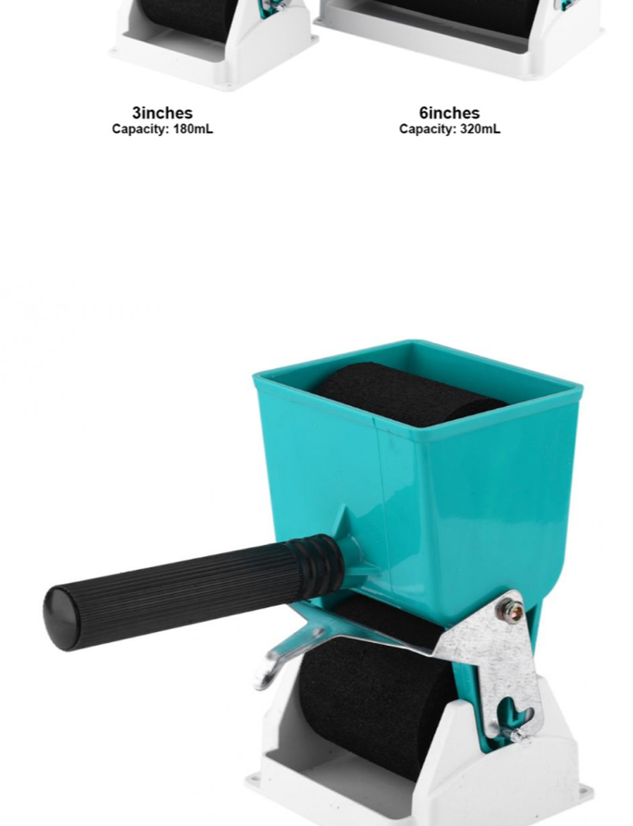 Simple roller type, easy to operate, uniform glue coating. Two sizes: 3 inches wide, 7.5 centimeters wide, and 180ml capacity. 6 "by 15 cm, capacity 320ml. Two functions: adjustable flow and non-adjustable flow. The price of the product is not negotiable and the freight is calculated according to the weight. One has two rollers in it.