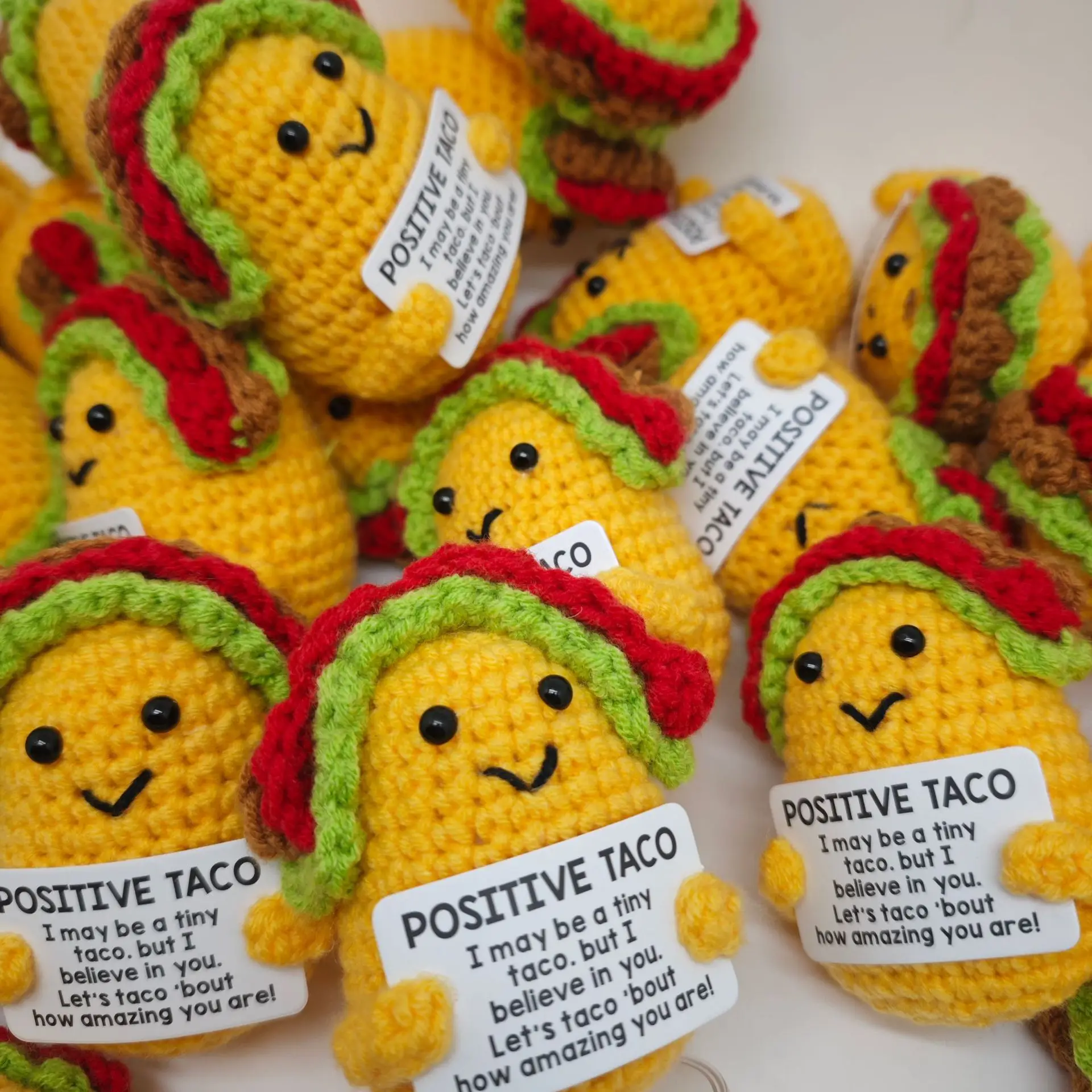 Cute Positive Taco Crochet: emotional motivational support mini taco with positive card "I may be a tiny taco, but I believe in you. Let's taco 'bout how amazing you are!" remind us to stay positive in a cute and cheerful way. Let's embrace the good stuff in life