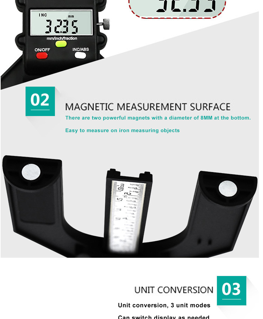 Product Description Model Number: - Accuracy: 0.01mm Caliper Type: Digital Calipers Material: Plastic Measurement Range: 0-80mm DIY Supplies: Woodworking 1. Intuitive reading of liquid crystal display 2: magnetic measuring surface...