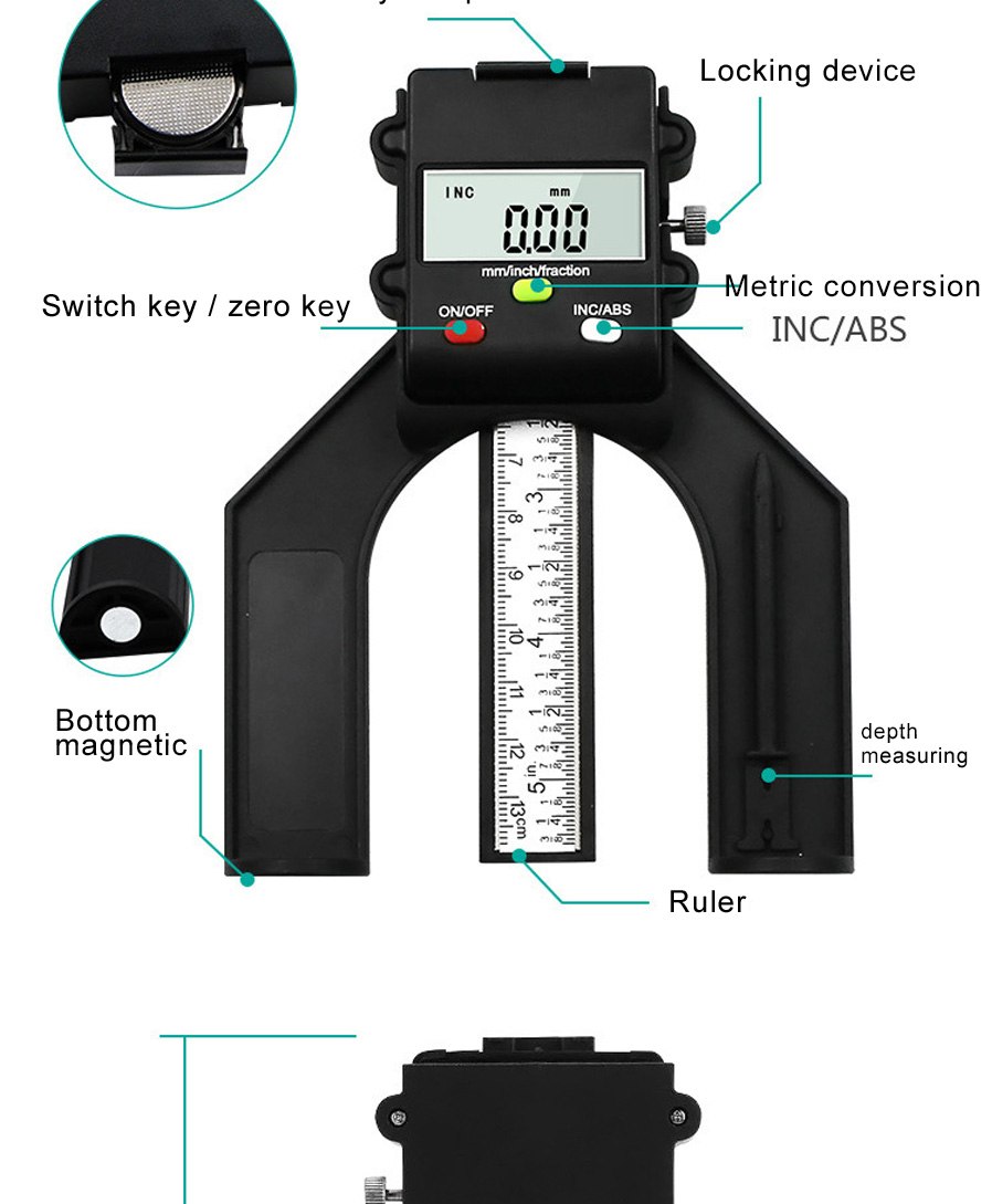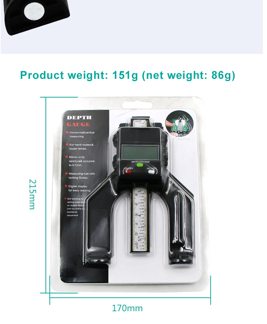 Professional Woodworking Electronic Digital Depth Gauge 0-80mm Woodworking Digital Depth Gauges Digital Calipers Black