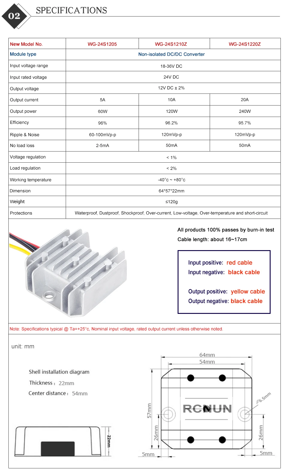 RCNUN 24V to 12V 5A 10A 20A Reliable DC DC Converter Step Down Voltage Regulator 24 volt to 12 volt Buck Module for Cars Solar