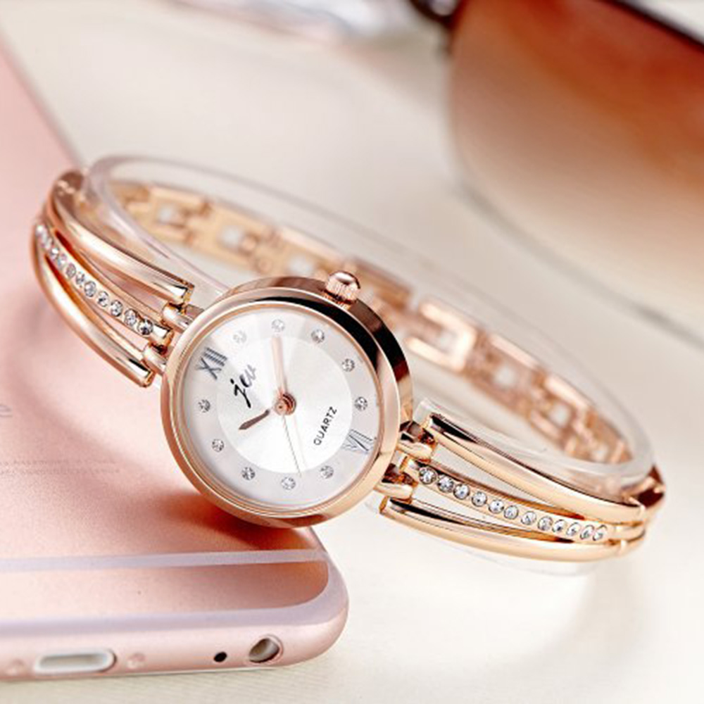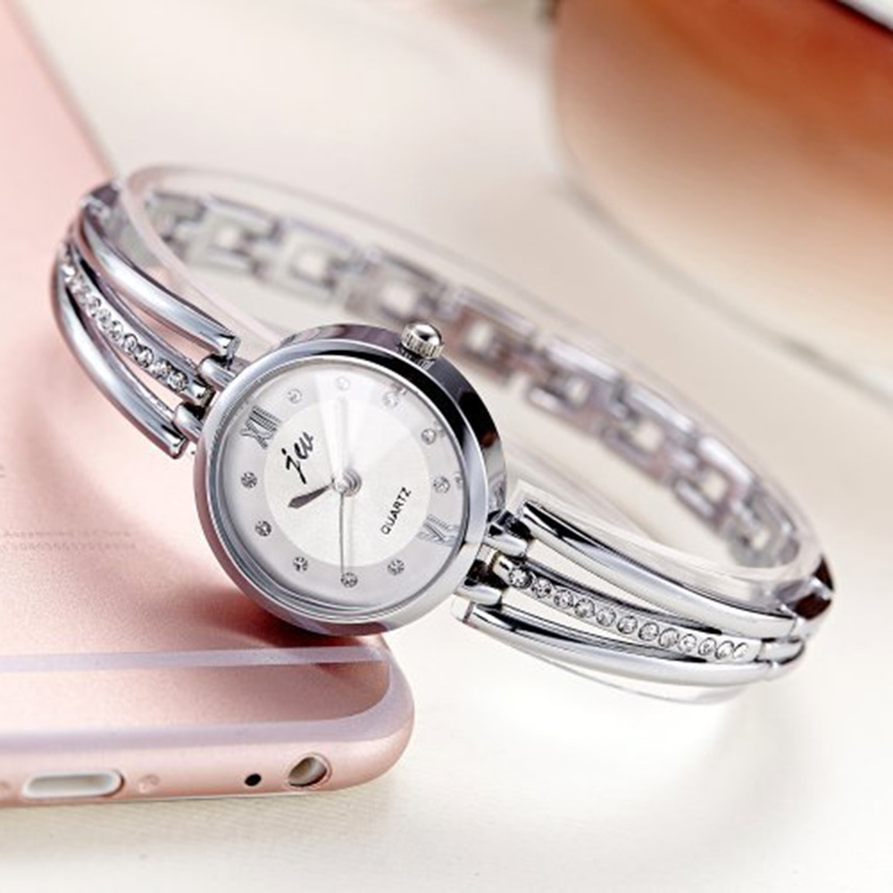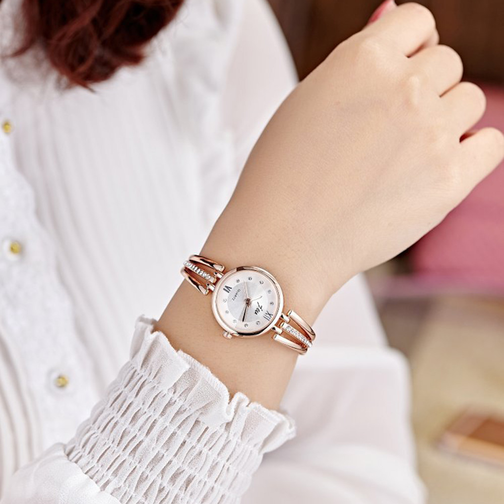 Round Digital Wristwatches Diamond Strap Elegant Fashion Watches For Women Gold