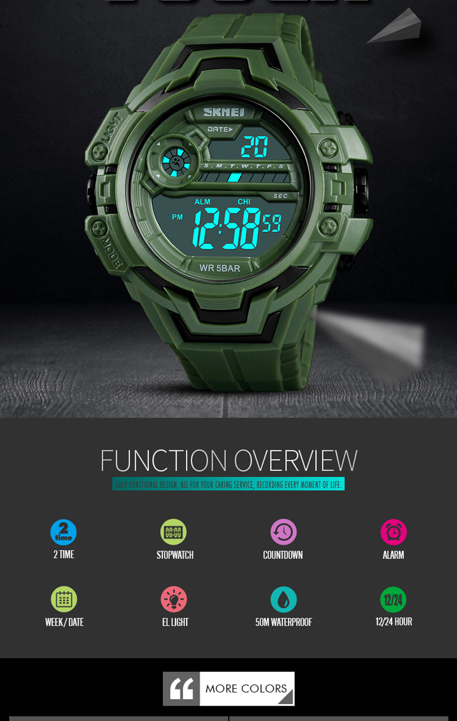 SKMEI Mens Smart Watch Sports Digital 50M Waterproof Countdown Alarm Clock Dual Time Luminous Electronic Wrist Watch Black