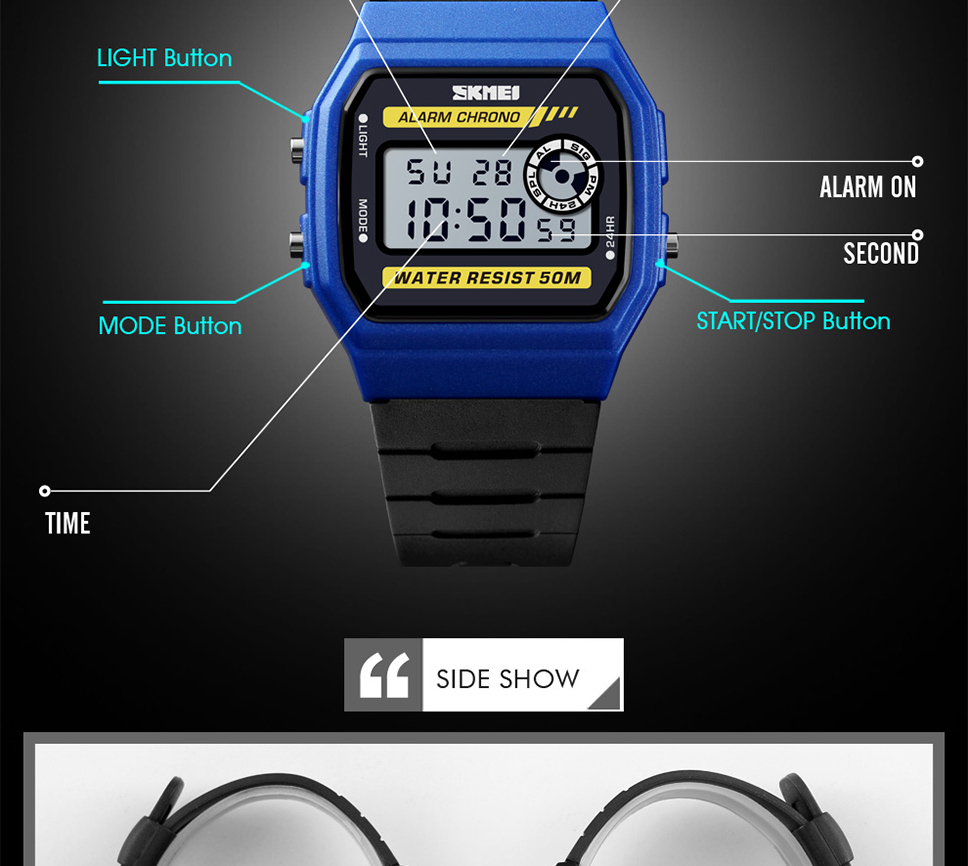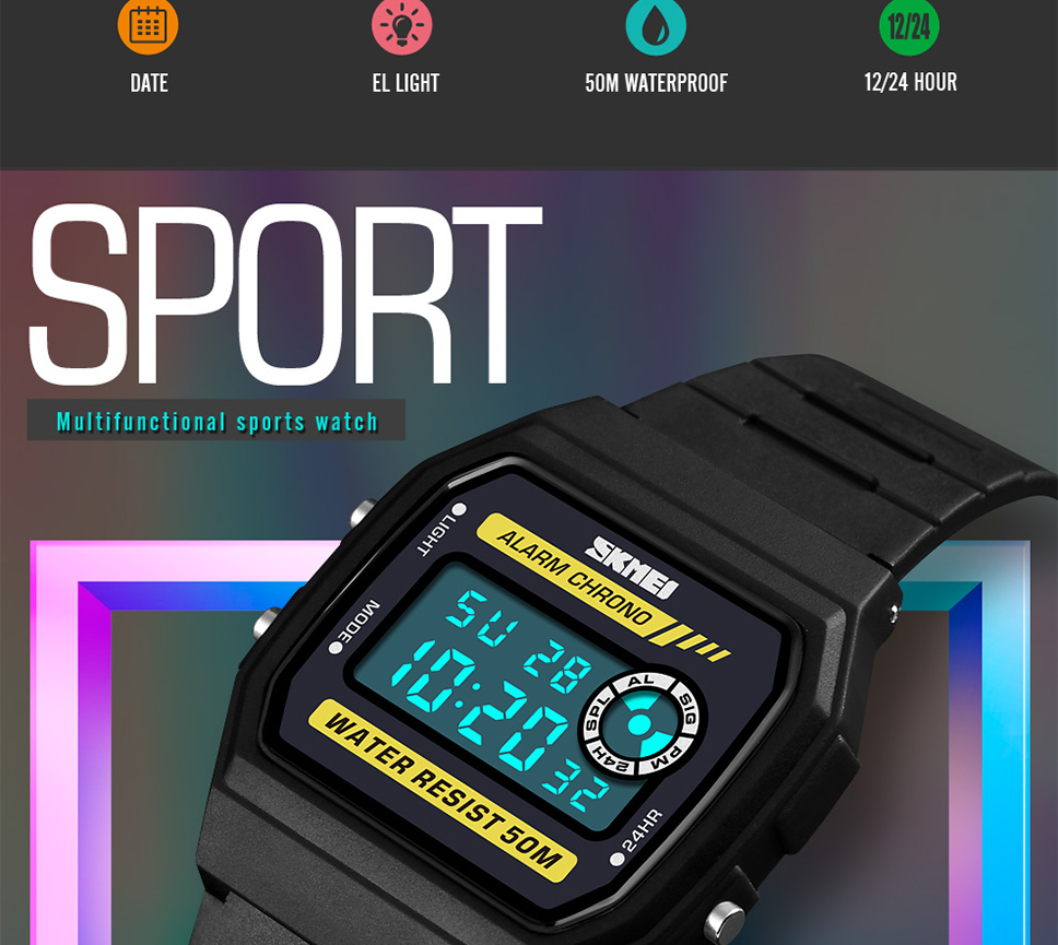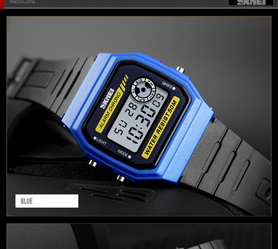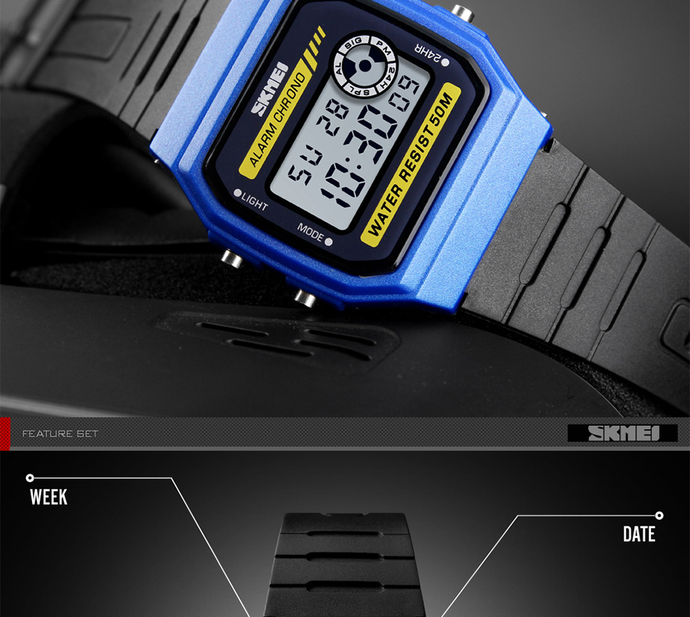 Skmei Multifunction Fashion LED Digital Watch For Couple Student 50m Waterproof Watch With Date Time Week Alarm Black