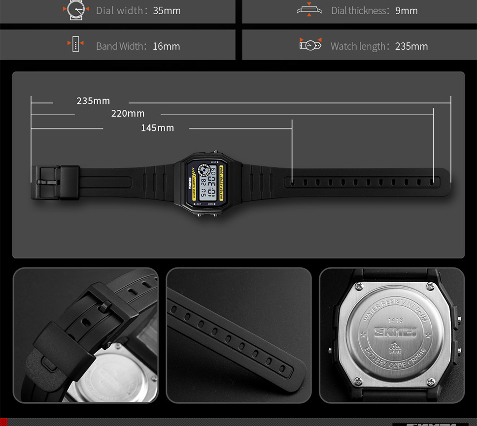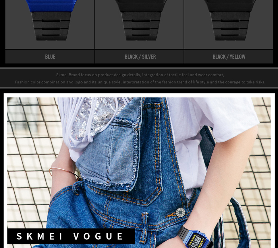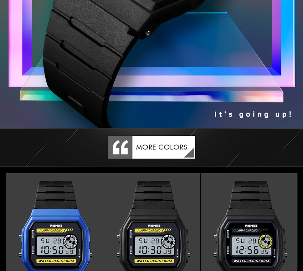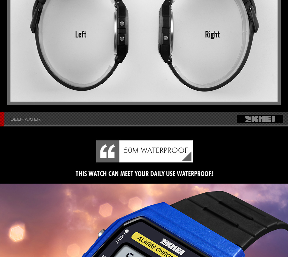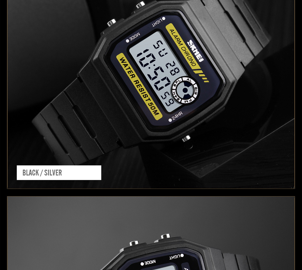 Skmei Multifunction Fashion LED Digital Watch For Couple Student 50m Waterproof Watch With Date Time Week Alarm Black