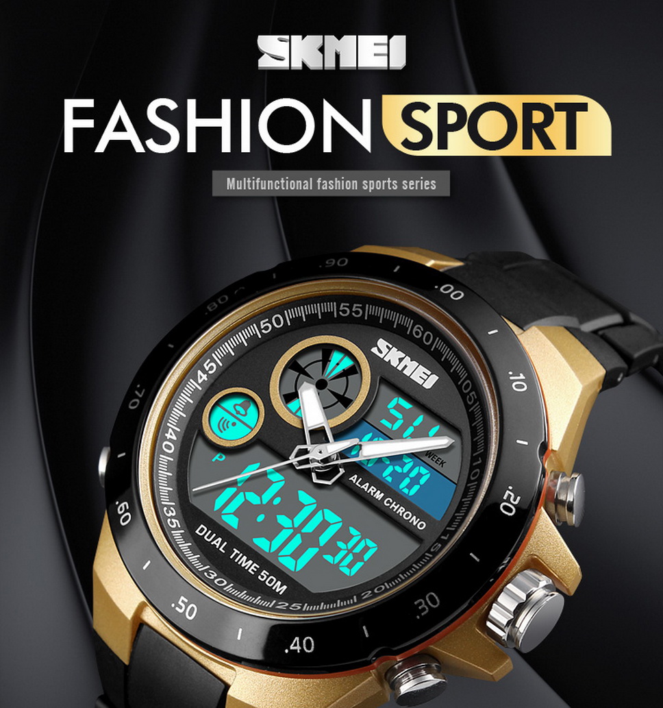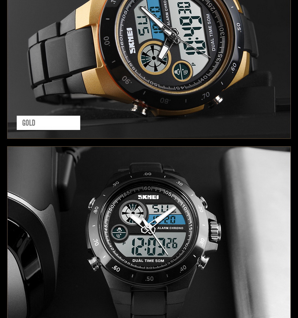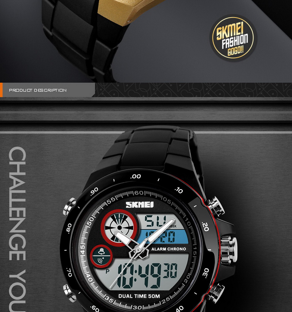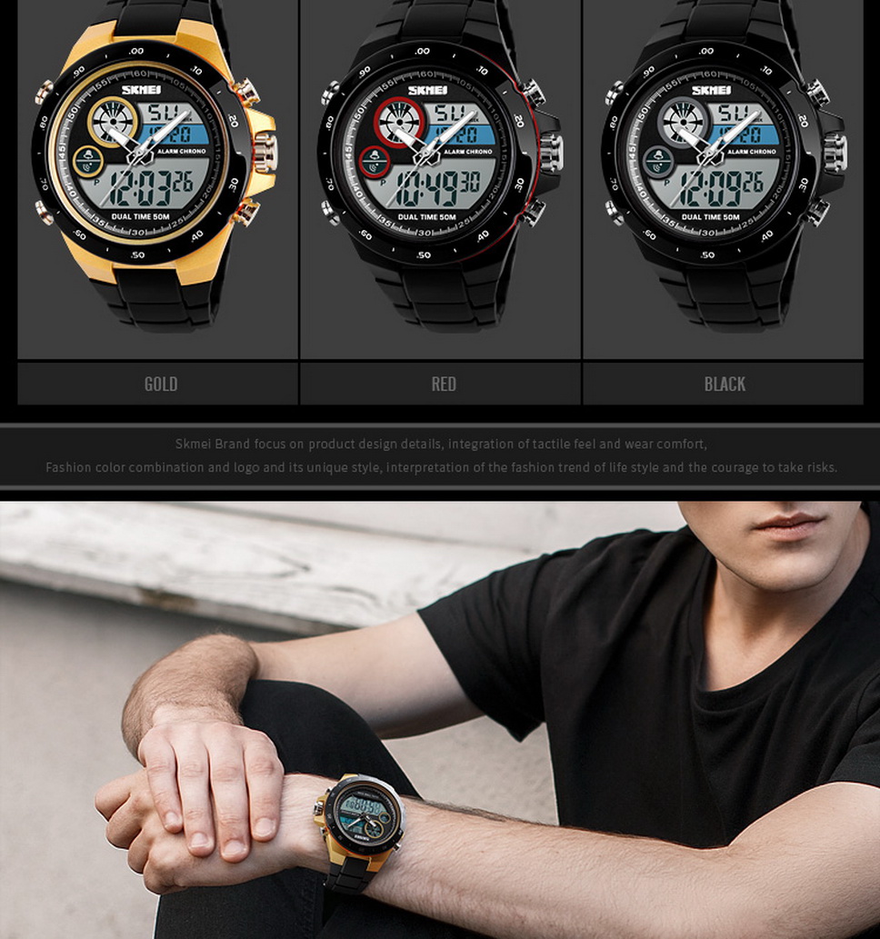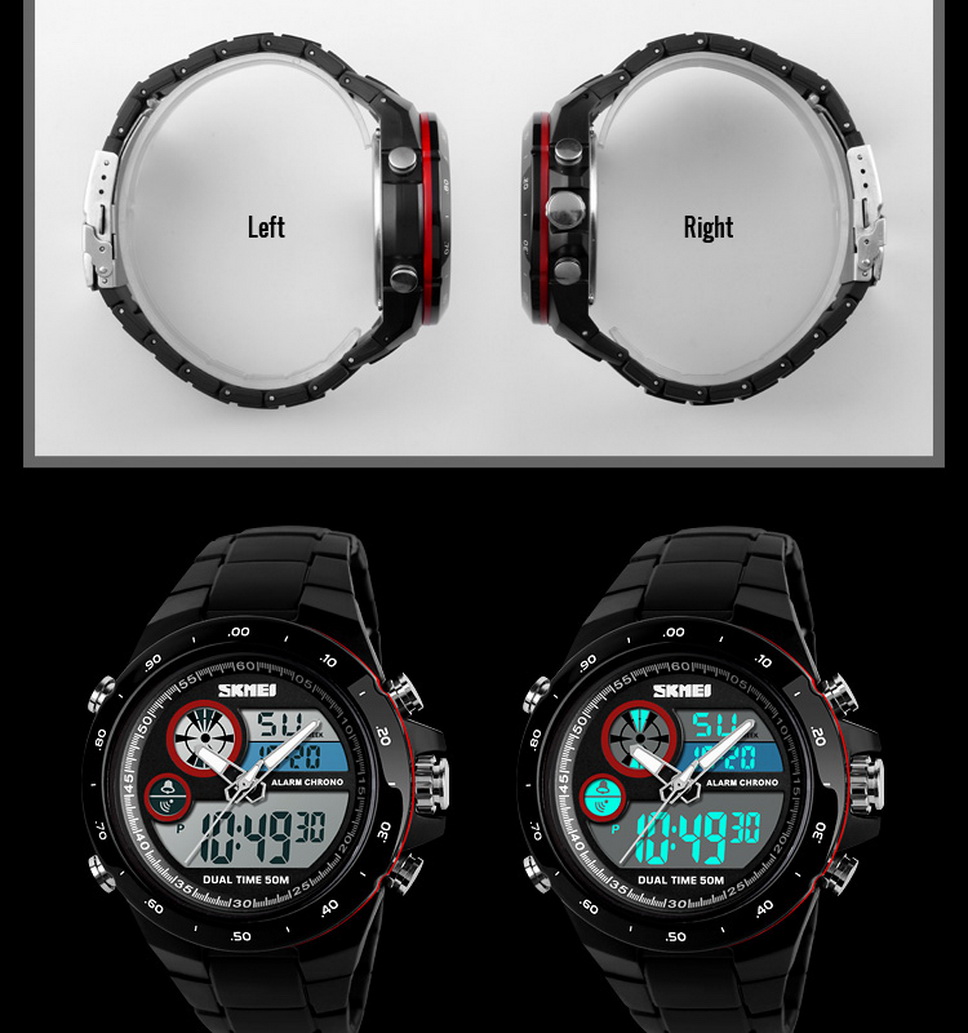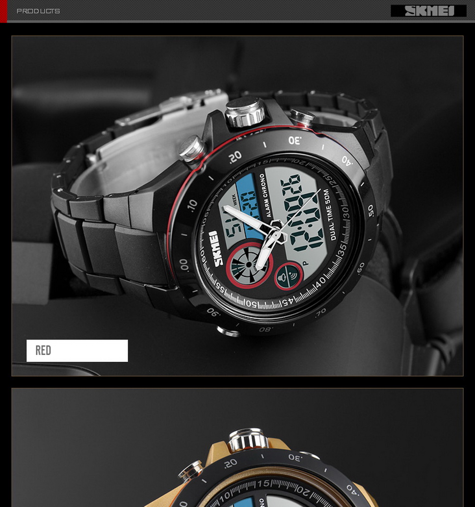 SKMEI Waterproof Round Dial Sports Digital Wristwatch, Student Watch With Luminous Effect, Dual Time Display Red