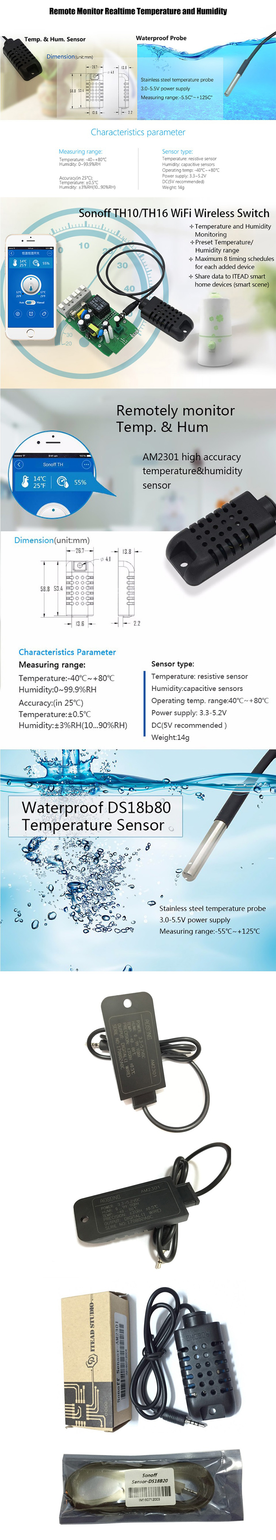 The sensor should be used in conjunction with Sonoff TH 10A/16A WiFi thermostats for temperature and humidity monitoring.