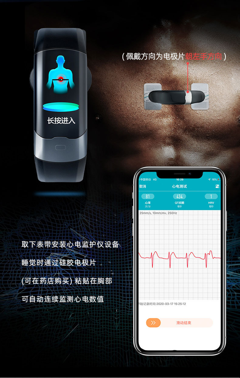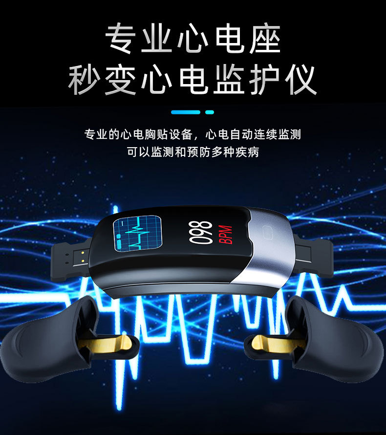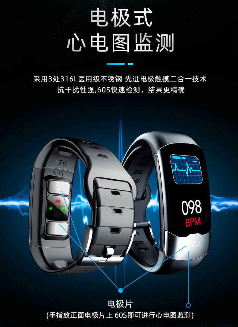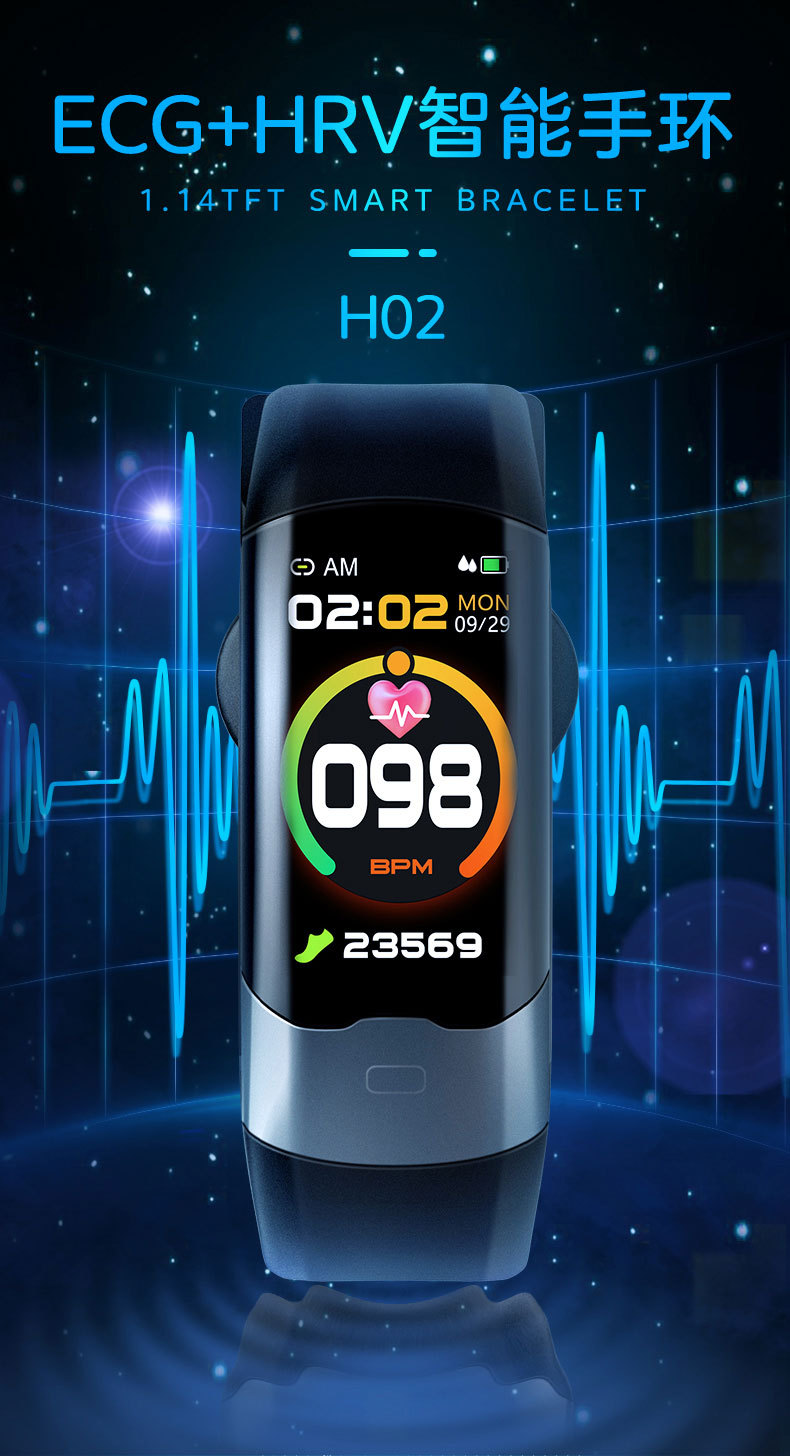 H02 Smart ECG BraceletFeatures: Ambulatory blood pressure, dynamic heart rate, electrocardiogram test (ECG PPG HRV)Main features:Exercise: step counting, calories, distance, stopwatch, sleep monitoring, call reminder, SMS reminder, alarm clock reminder,Shake...