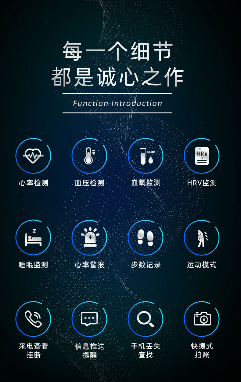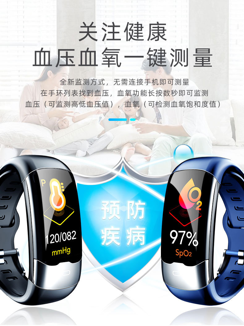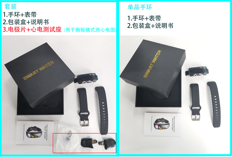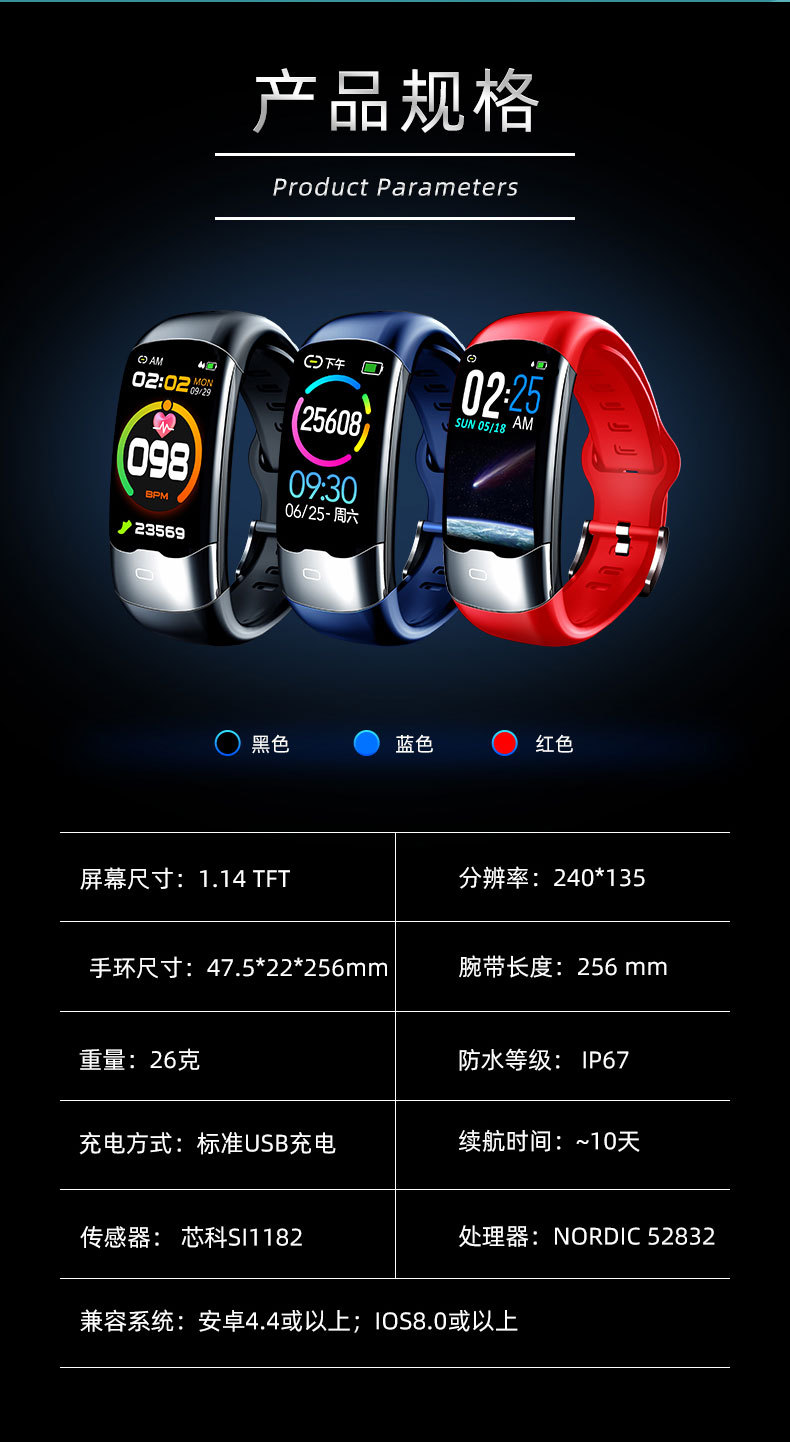H02 Smart ECG BraceletFeatures: Ambulatory blood pressure, dynamic heart rate, electrocardiogram test (ECG PPG HRV)Main features:Exercise: step counting, calories, distance, stopwatch, sleep monitoring, call reminder, SMS reminder, alarm clock reminder,Shake...