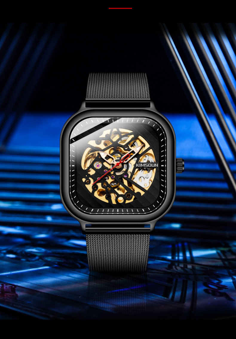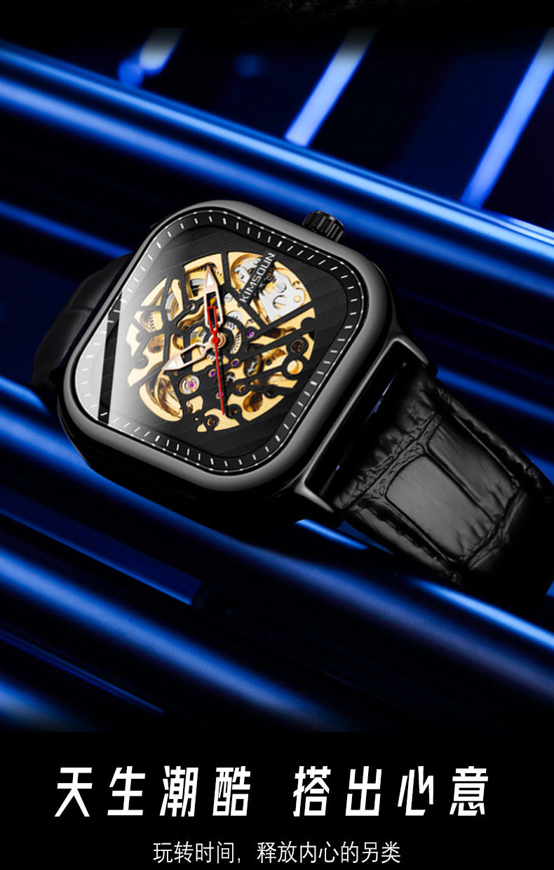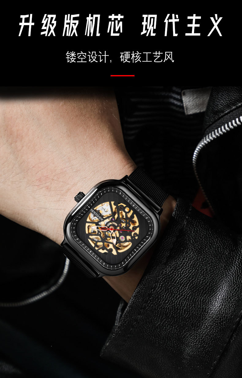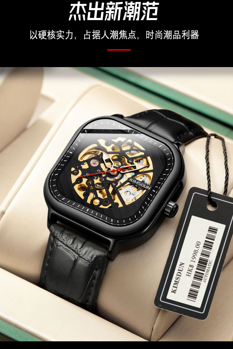 Square Hollow Watch Men's Mechanical Automatic Watch Fashion Men's casual Student Waterproof Watch K-2161A