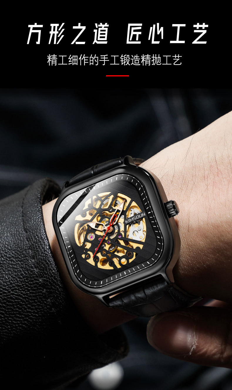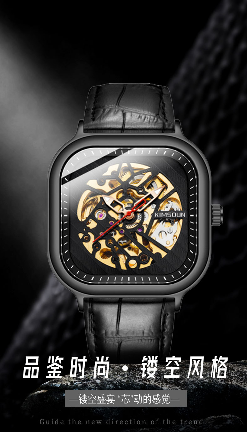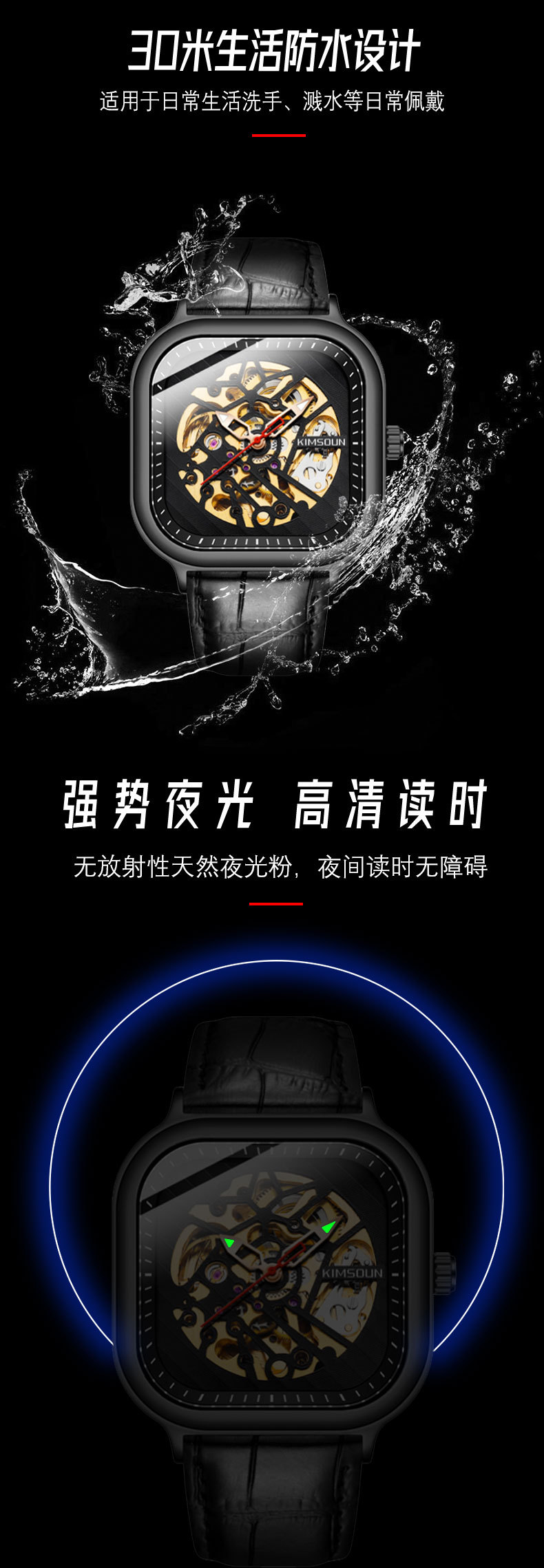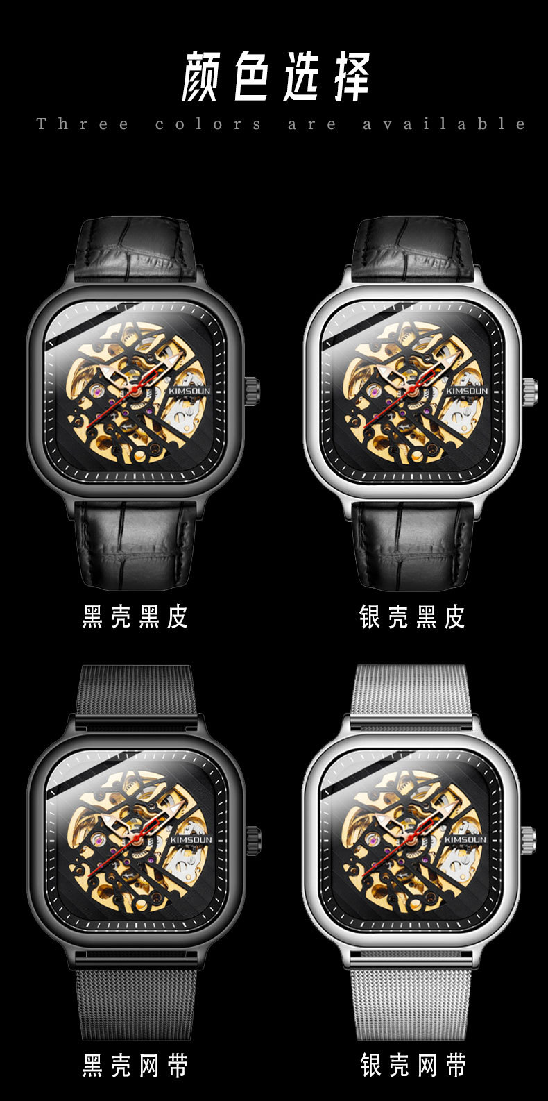 Square Hollow Watch Men's Mechanical Automatic Watch Fashion Men's casual Student Waterproof Watch K-2161A