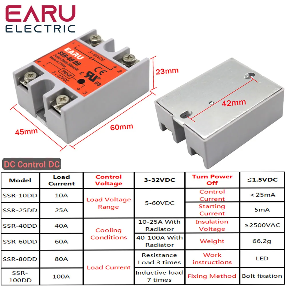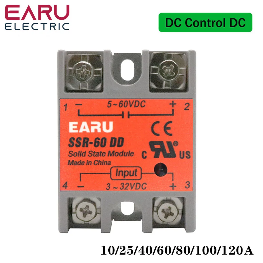 SSR-60DD Solid State Module Relay DC-DC Single Phase SSR 1-120A 60A 80A 120A Current 3-32V 5V 12V DC to 5-60V DC Load Without Cover