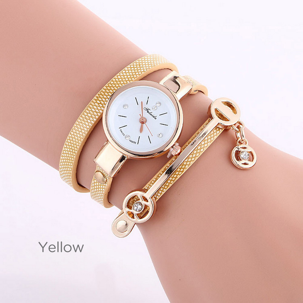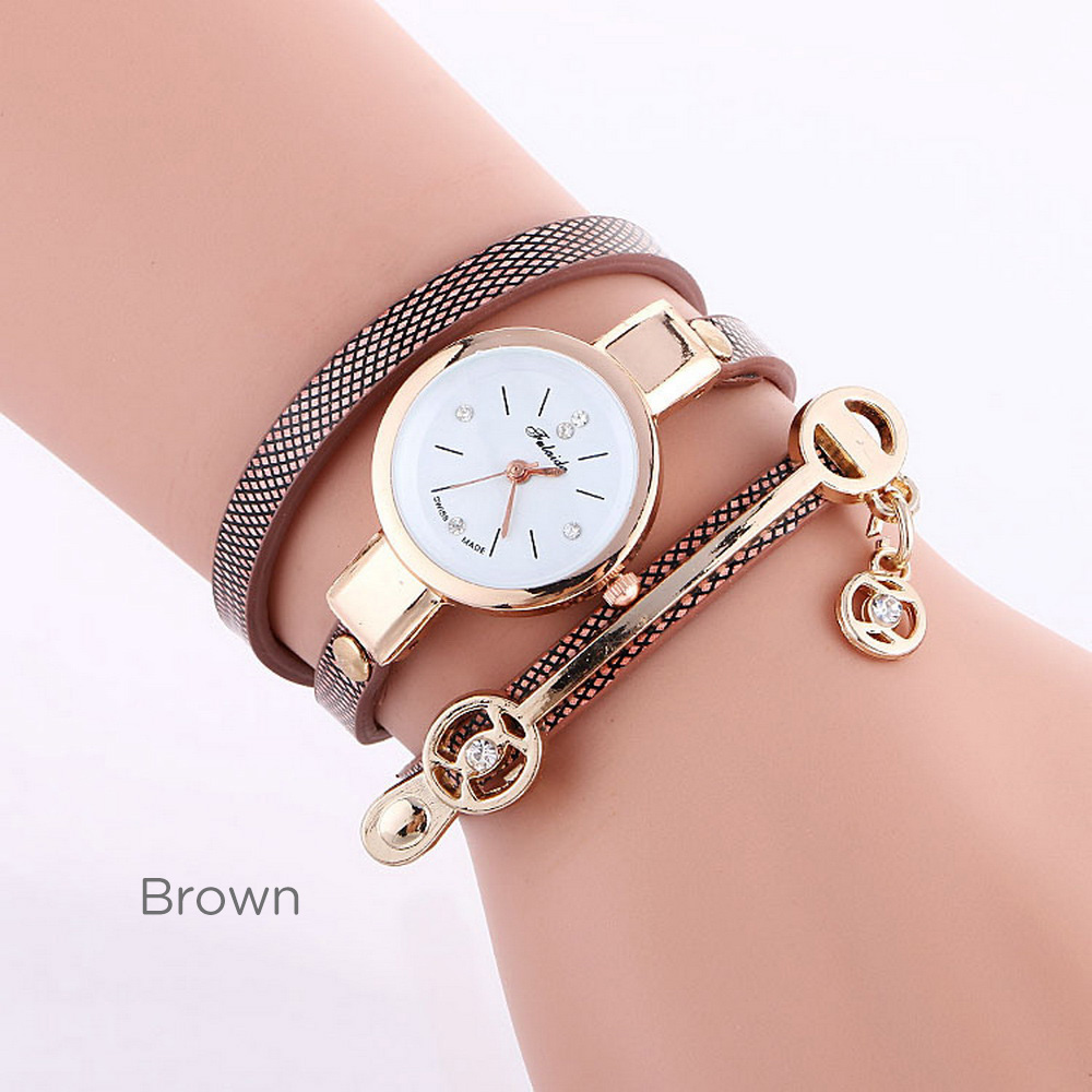 The New Women Bracelet Diamond Circle Watch Student Fashion Quartz Watches Brown