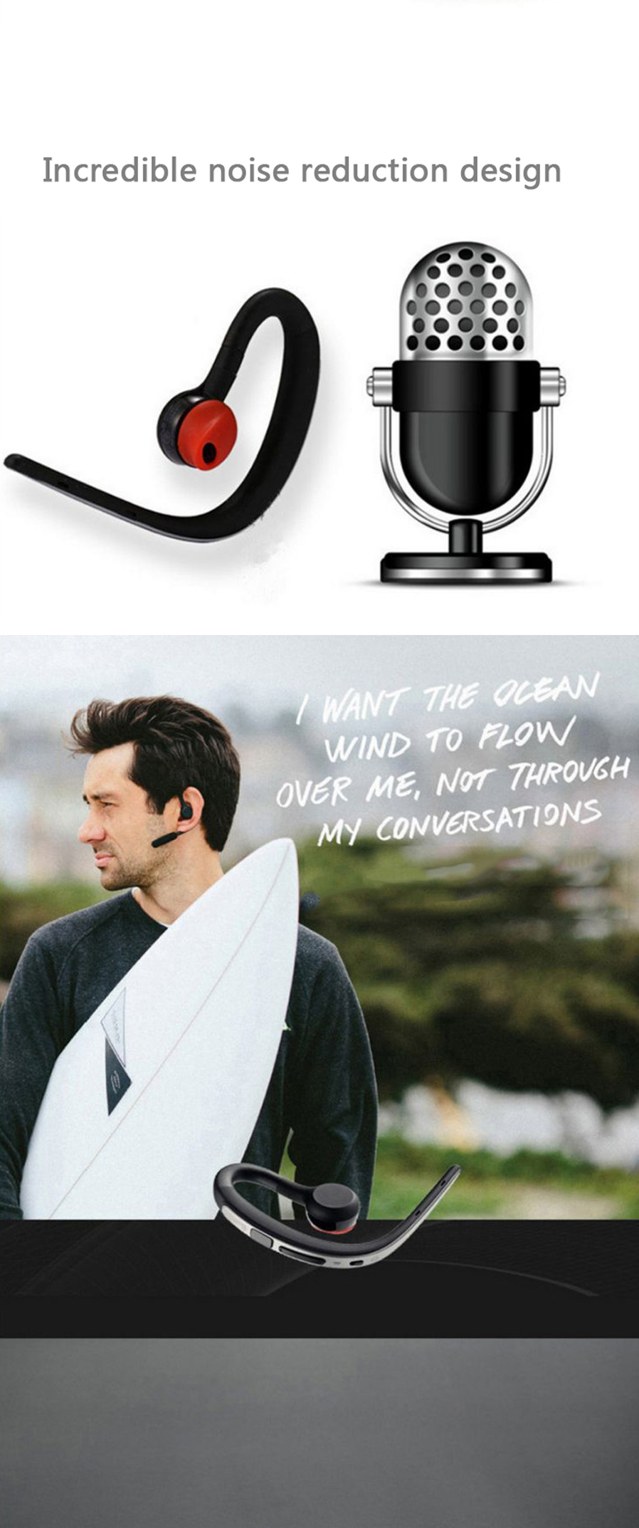 Unisex Single Track Stereo Headphone Sports Style Wireless Bluetooth 4.1 Earphones Ear Hook Headset Silver