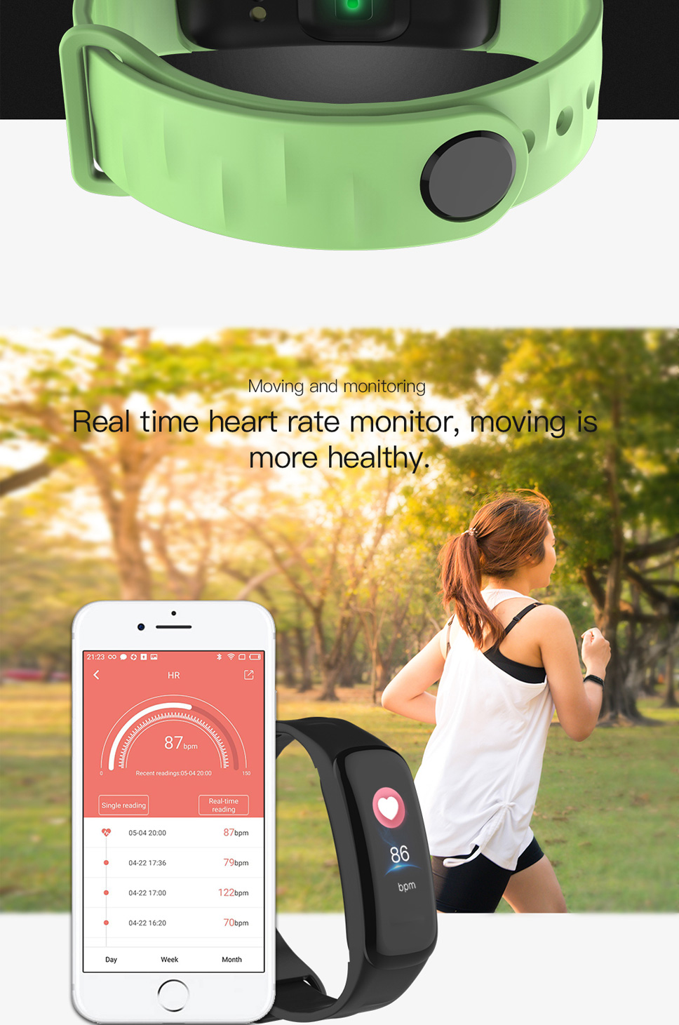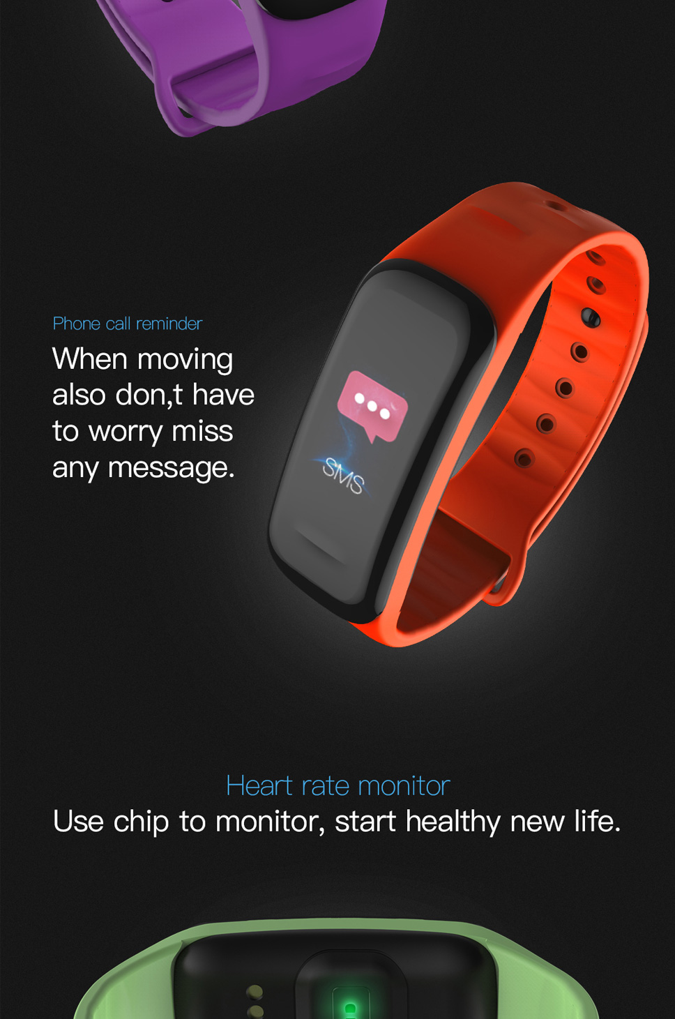 | Function: Heart Rate Tracker,Countdown,Calendar,Push Message,Message Reminder,Passometer |