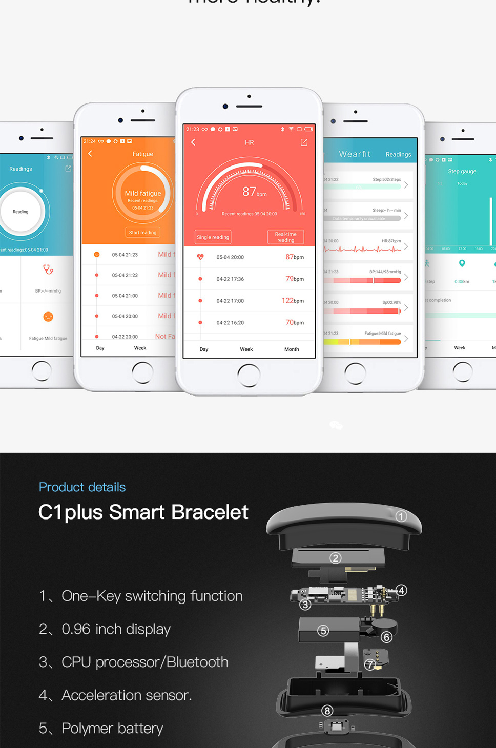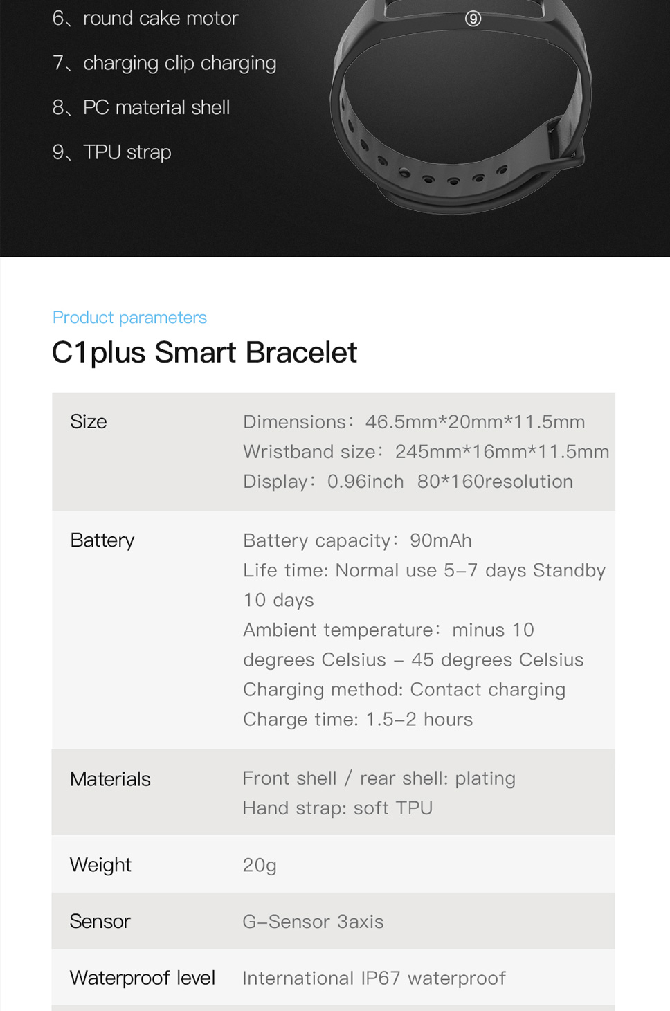 2:90mah polymer battery, TPU strap