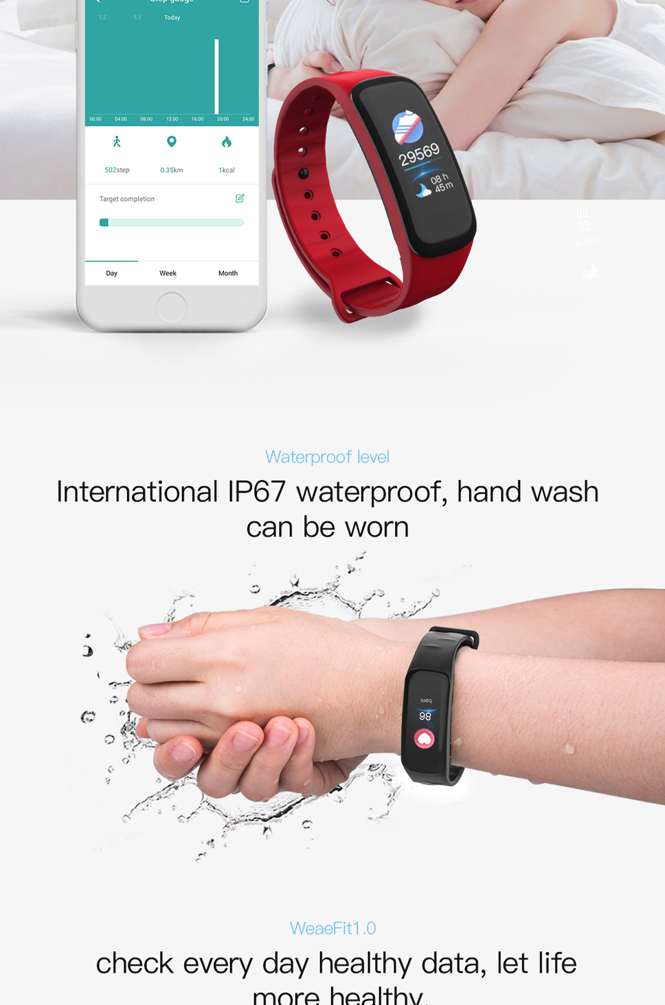 Product Description Model: wearpai WP106 Band Detachable: Yes Case Material: Plastic Screen Style: Rectangle/Square-shape Style: Fashion Application Age Group: Adult Screen Type: Color LCD Band Material: Silica Waterproof Grade: Life...