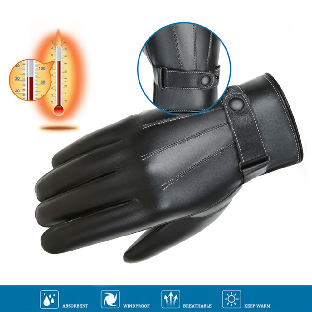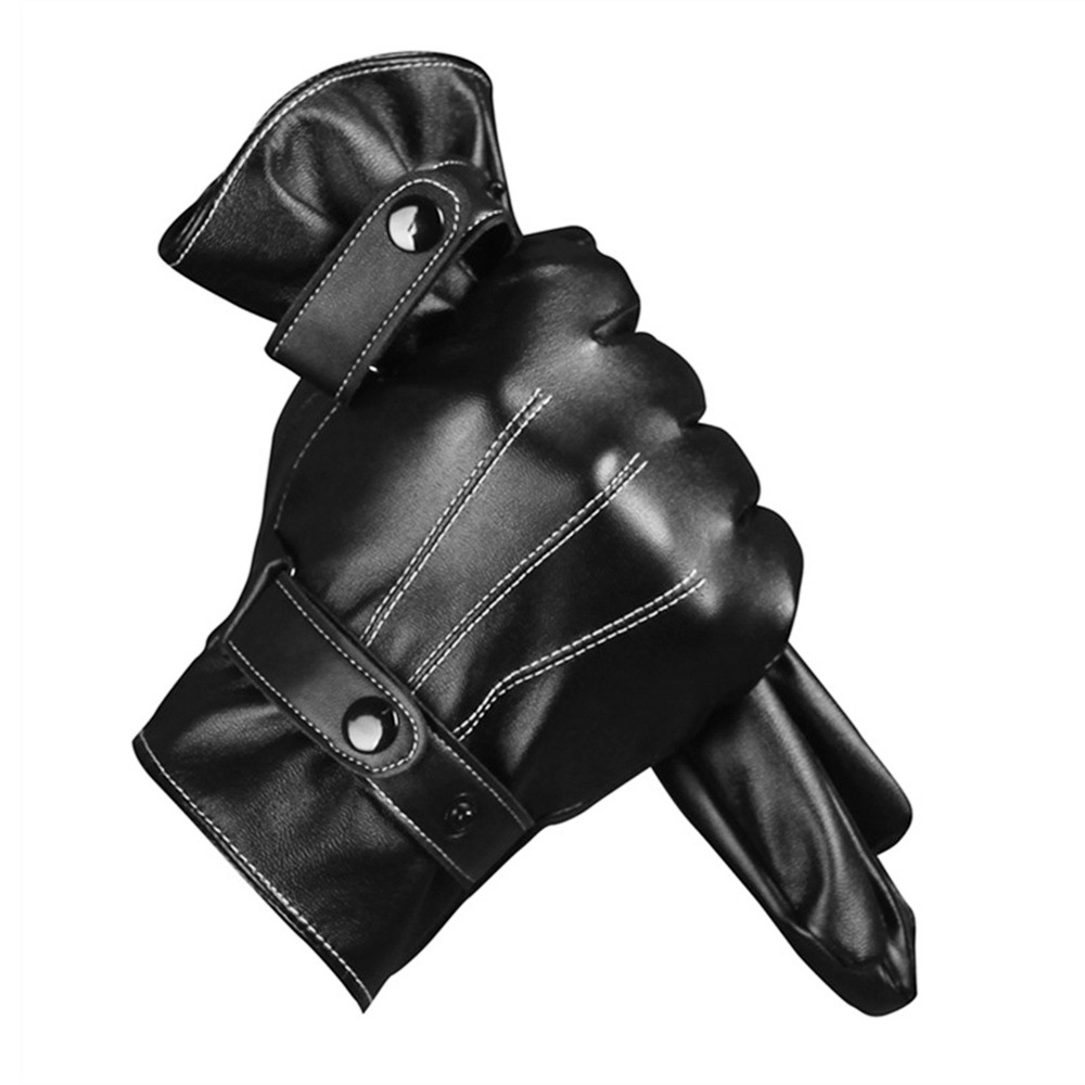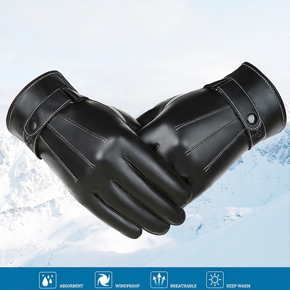 Winter Warm Plus Velvet Windproof Faux Leather Touch Screen Motorcycle Cycling Gloves For Male Black