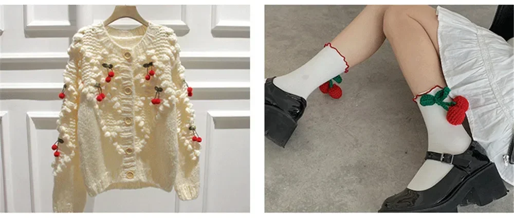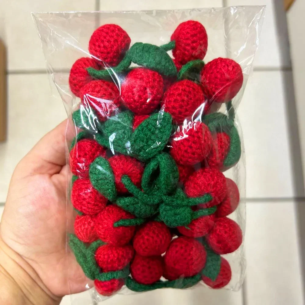 Yarn Cherry Hook Weaving DIY Ornaments Craft Supplies Clothing Hat Shoe Key Chain Earring Decor Pendant 10Pcs Knitted Woolen